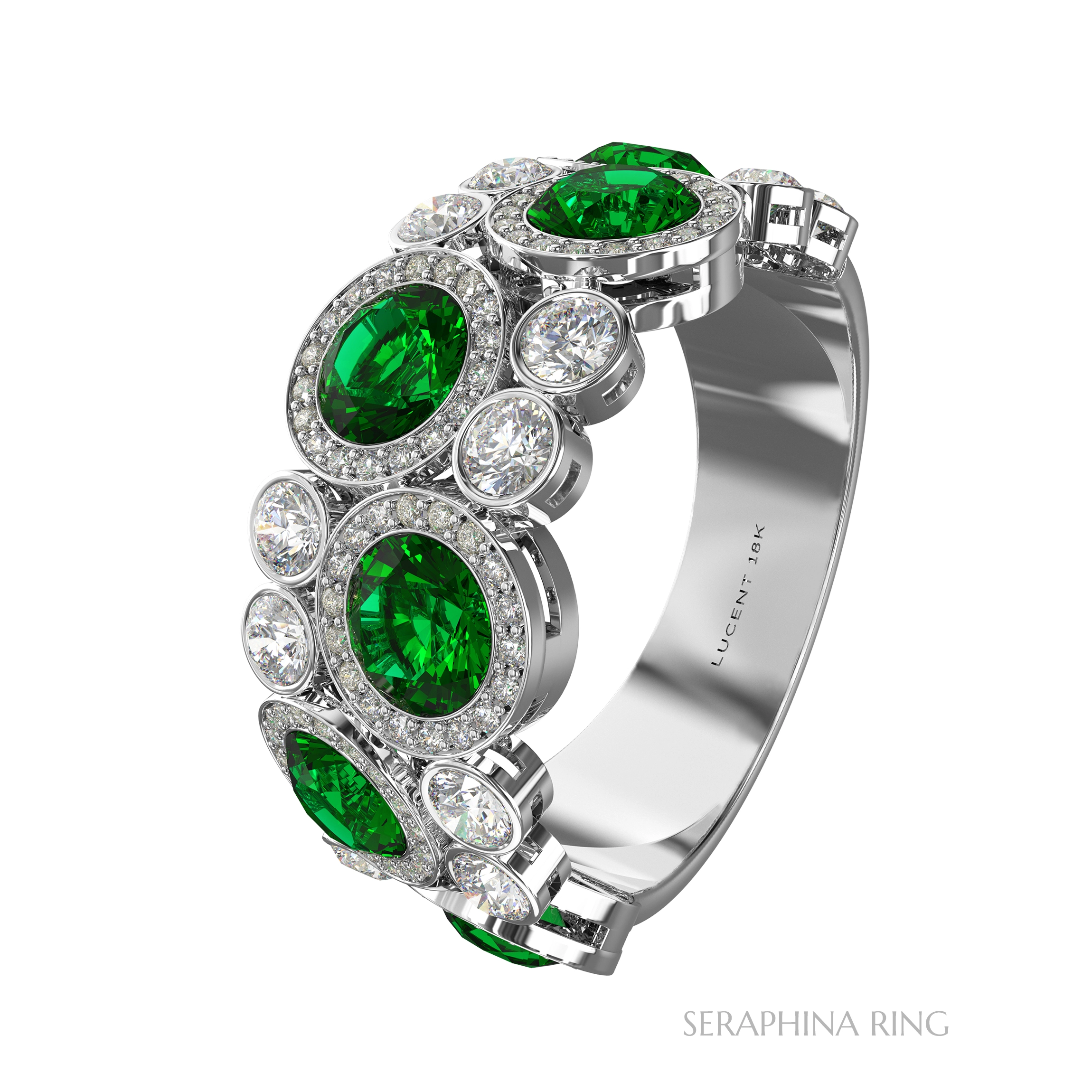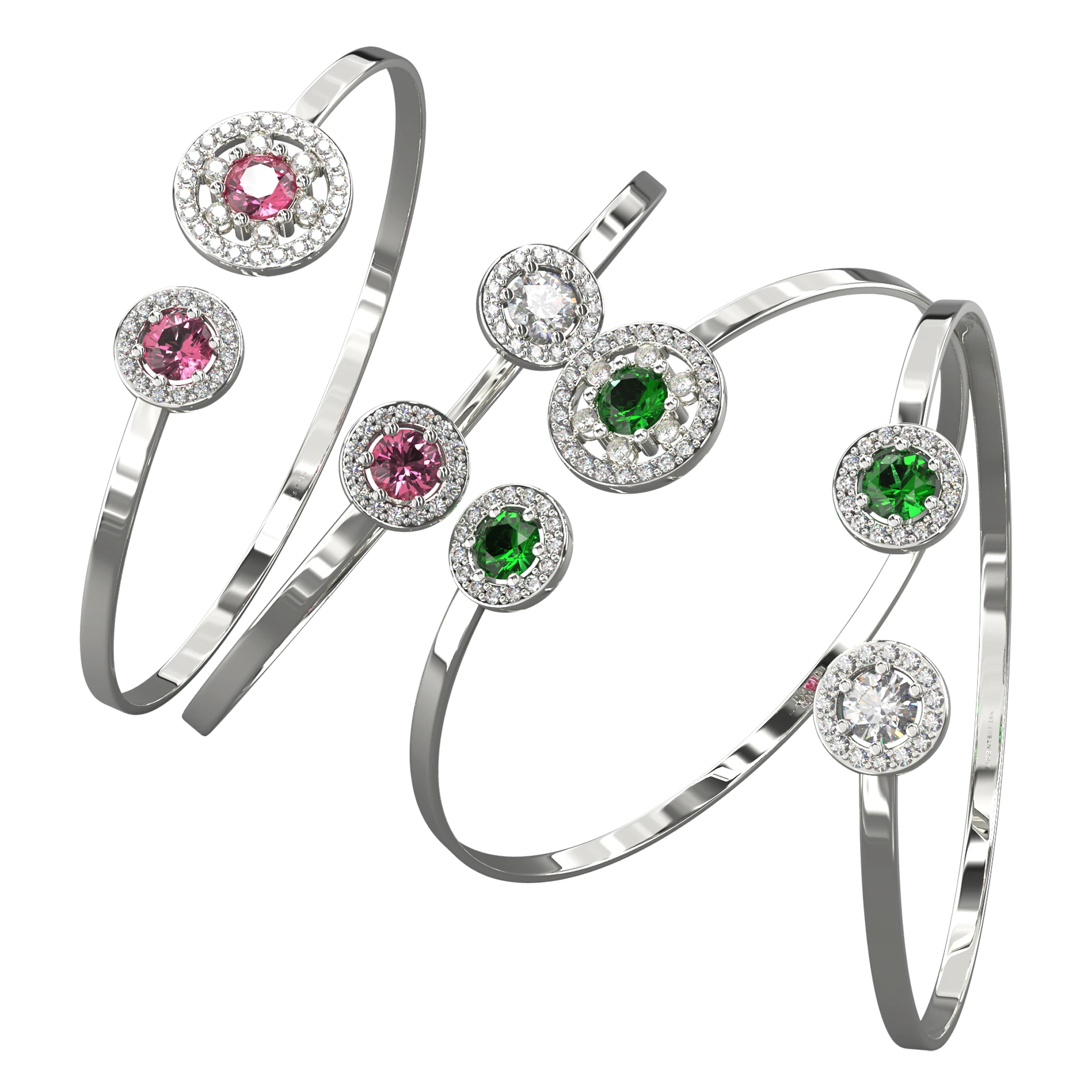 The circular, fluid design of this piece symbolizes the timelessness of beauty and love. Each gemstone is meticulously cut to reflect light in the most dazzling way possible. The combination of white gold and precious stones not only embodies elegance and refinement but also stands as a testament to enduring strength and everlasting bonds